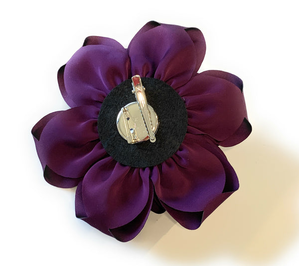 15cm Large Rose Fascinator Corsage Hair Clip and Brooch Pin, Satin Flower, Dark Purple
